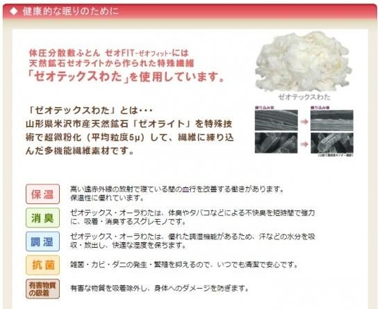 ・中わたには米沢市産天然鉱石を練り込んだ多機能繊維ゼオテックスわたを使用