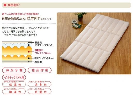 ・腰痛・肩こり・首や背中の張りや痛みなどお悩みの方におすすめの、身体(頭・肩・腰・足)にかかるそれぞれの体圧に合わせて硬さの異なる体圧分散敷布団です